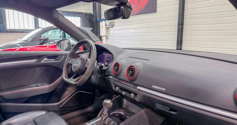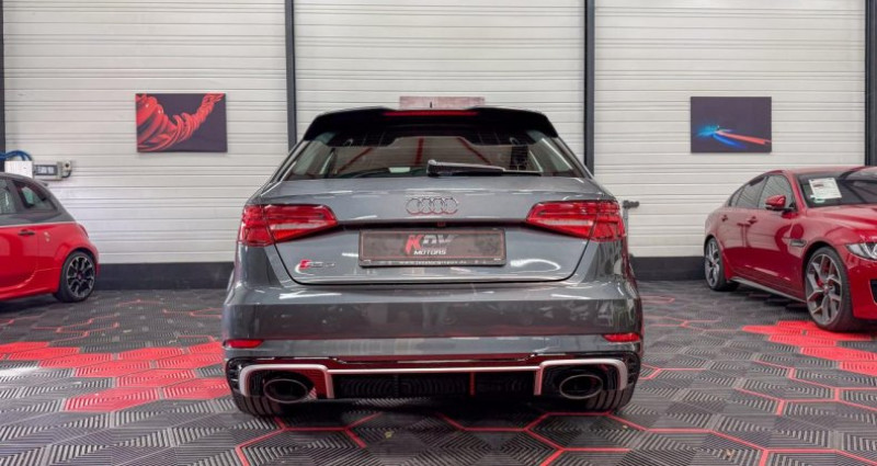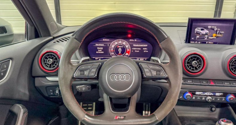 ======= options ======= adaptive cruise control avec fonction stop&go incluant audi pre sense avant applications décoratives aluminium compétition éclairage design audi active lane assist audi magnetic ride : système d'amortisseurs adaptatifs permettant de choisir soi-même le réglage du châssis bang & olufsen sound system banquette arrière divisée en 3 parties 40 20 40 avec accoudoir central caméra de recul : avec affichage de la zone située derrière le véhicule sur l'écran mmi jantes en aluminium coulé style blade à 5 branches en style titane mat finition brillantes avec pneus : 255 30 r19 av et 235 35 r19 ar pack assistance pack cuir étendu pack de style aluminium mat y compris trompette de prise d'air pack design rs peinture métallisée ou nacrée projecteurs audi matrix led avec clignotants dynamiques (avant et arrière) rampes de pavillon en aluminium mat réception radio numérique (dab) sièges avant chauffants sièges sport rs à l'avant en cuir nappa avec surpiqûres diamant sorties d'échappement sport rs pour une sonorité encore plus sportive toit panoramique en verre : commande électrique pour relever et ouvrir la partie avant en verre, fonctionnement automatique pour l'ouverture et la fermeture, zone en verre teinté avec pare-soleil réglable en continu vitesse maximale (vmax) relevée à 280 km h vitres surteintées (privacy glass) : lunette arrière et vitres latérales arrière surteintées accoudoir central avant coulissant en longueur, avec vide-poches relevable et inclinaison réglable advanced key : système d'autorisation d'accès et de démarrage main libre ailes avant avec passages de roues élargis airbag de genoux airbags conducteur et passager airbags latéraux (thorax bassin) avant alarme antivol avec protection antiremorquage, incluant protection volumétrique de l'habitacle (non homologuée) applications décoratives sur les contre-portes et tableau de bord style 3d gris titane appuie-tête intégraux à l'avant et à l'arrière asr (antipatinage) audi connect avec une carte sim de données intégrée audi drive select : différents réglages du véhicule à travers trois modes audi parking system plus : signal acoustique et visuel d'aide au stationnement avant et arrière par pictogrammes sur l'écran audi premium tracking system audi smartphone interface avec applecarplay et androidauto audi sound system : 10 haut-parleurs incluant un haut-parleur central et un subwoofer ; amplificateur à 6 canaux avec une puissance totale de 180 watts audi virtual cockpit : combiné d?instruments entièrement numériques avec affichage haute résolution sur un écran de 12,3 baguettes décoratives sur les vitres latérales style aluminium mat ; revêtement noir brillant sur les montants de pavillon centraux extérieurs et les triangles de portières arrière becquet arrière rs3 laqué dans la couleur de la carrosserie, au niveau du pavillon avec inserts aérodynamiques latéraux noir brillant buses de lave-glace chauffantes calandre audi singleframe avec grille de calandre à structure alvéolée noir brillant et encadrement d'une seule pièce style aluminium mat ; ouvertures d'entrées d'air en noir brillant châssis sport rs ciel de pavillon en tissu noir clé à fréquence radio, avec emblème rs climatisation automatique bi-zone contrôle de pression des pneus ( tpms ) détecteur de pluie et allumage automatique des projecteurs direction progressive contribuant à une augmentation de la dynamique de conduite grâce à une démultiplication directe et progressive ecrous antivol pour les roues extensions de bas de caisse couleur carrosserie feux de route assistés : gestion automatique du passage de feux de croisement à pleins phares et inversement fixation pour sièges enfants isofix et top tether pour les places arrière extérieures frein de stationnement electromécanique freins à disques identification du modèle technologie sur le capot de coffre inscriptions rs3 sur la calandre, le capot de coffre, les baguettes des seuils de portes, le volant sport, le pommeau de levier de vitesses et le compte-tours jantes en alliage léger en style à 10 branches, ultrabrillantes, avec pneus 235 35 r19 lave-phares mmi navigation plus avec mmi touch outillage de bord et cric pack aluminium extérieur pack aluminium intérieur pack eclairage pack rangement + pack coffre palettes de changement de rapports au volant pare-brise acoustique pare-chocs rs : style dynamique et sportif, larges prises d'air à l'avant en noir brillant ainsi que lame horizontale laquée dans la couleur de carrosserie, diffuseur noir brillant à l'arrière pédalier et repose-pied en acier inoxydable peinture intégrale unie phares intégralement à led (full led) avec clignotants arrière dynamiques régulateur et limiteur de vitesse rétroviseur intérieur électrochrome rétroviseurs extérieurs réglables, dégivrants et rabattables électriquement avec position automatique pour manoeuvre de stationnement rétroviseurs extérieurs style aluminium mat avec rappels de clignotant à diodes, asphérique côté conducteur, convexe côté passager avant, dégivrants et escamotables électriquement roue de secours compacte sécurité enfants électrique seuils de portes avec inserts en aluminium et emblème rs 3 sièges avant sport système abs avec répartiteur électronique de freinage ebv, programme électronique de stabilisation esc avec détection de barres de toit et assistance au freinage d?urgence système d'airbags de tête système start stop avec récupération d'énergie de freinage tapis de sol av et ar trousse de secours avec triangle de présignalisation volant réglable manuellement en hauteur et en profondeur volant sport 3 branches multifonction en cuir avec méplat ======= equipements de serie ======= accoudoir central avant coulissant en longueur, avec vide-poches relevable et inclinaison réglable advanced key : système d'autorisation d'accès et de démarrage mai